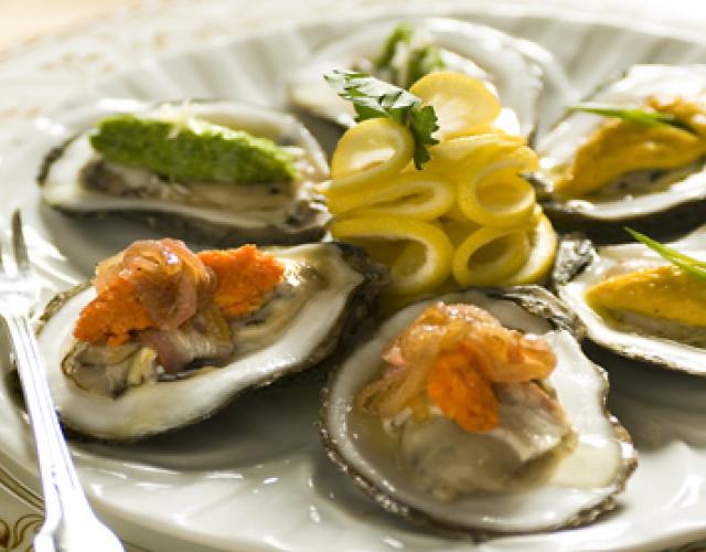 Bacon Wrapped Oyster w/ Shallot Confit and Cayenne Crust Courtesy: Begue's Restaurant, Royal Sonesta New Orleans This is a bacon wrapped oyster served on a half-shell over a shallot confit with cayenne breadcrumbs. Cook/Prep Time: 1 HourServings: 1 Ingredients 1/2 dozen freshly shucked Louisiana oysters 6 smoked bacon strips 5 lbs. shallots, peeled 1 Tbsp. champagne vinegar 1/4 cup brown sugar 1 Tbsp. olive oil 2 Tbsp. butter 1 Tbsp. Kosher salt 1 Tbsp. black pepper 4 oz. Cayenne pepper 2 qts. vegetable oil 2 lbs. panko bread crumbs Directions For Bacon Wrapped Oysters: Blanch bacon in boiling water for three minutes. Cut bacon so that it wraps completely around oyster with ¼” overlap. For Shallot Confit: Slowly caramelize shallots in oil and butter, add brown sugar. Season with salt, pepper, and vinegar. For Cayenne Crust: Combine oil and cayenne pepper in saucepot, bring to a simmer and allow to rest one hour, strain and cool. In a food processor puree breadcrumbs and add ½ cup of cayenne oil while running. Assemble oyster by searing bacon wrapped oyster in non-stick skillet till crisp. Warm shallot confit and place in oyster shell, place oyster on confit, and top with cayenne breadcrumbs. Lightly toast oyster in broiler. Show off your culinary skills. Share pictures of your finished dish on social media and tag them with #LouisianaSeafood!