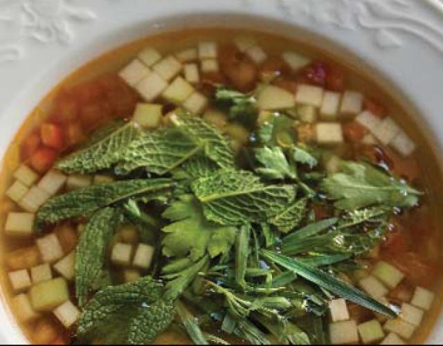 Blue Crab and Summer Vegetable Soup Chef Justin Devillier This is a tasty crab stock soup - feel free to experiment with all kinds of fresh vegetables from your summer garden. Cook/Prep Time: 2 HoursServings: 4 Ingredients 1/2 pound blue crab bodies, rinsed and dried 4 tablespoons vegetable oil 1 cup tomatoes, coarsely chopped 1 carrot, peeled and medium diced 2 large yellow onions, medium diced 2 celery stalks, medium diced 2 whole bay leaves 15 whole black peppercorns 1 ounce fresh thyme, tied with twine 3 ounces seasonal greens, chopped small 1 tablespoon vegetable oil 1/2 cup mirlitons, small dice 1/2 cup sweet red bell pepper, peeled and diced small 2 cups ripe heirloom tomatoes, concassé 1/2 pound Louisiana jumbo lump crabmeat, picked for shells salt, to taste white pepper, to taste extra-virgin olive oil, to taste 1/2 cup fresh herbs, picked and left whole Directions Broth Break up the crab bodies and set aside. Heat oil in a 12-quart stock pot. Once oil is nice and hot, add crab bodies one by one, being sure not to splash oil on your arms. Stir with a large spoon over high heat until all the water is cooked out of the crabs and they begin to turn dark red and/or golden in color. As bits of crab begin to stick to the bottom of the pot, scrape them off with your spoon: This is called “fond” and adds lots of flavor. Once your crabs are dry and you have developed plenty of fond, add your tomatoes, carrots, onion, and celery. Stir to incorporate and cover with water 3 inches above the crabs and vegetables. Add herbs and spices. Bring to a boil and turn down to medium-low heat. Let simmer for 1 1/2 hours. Strain through a chinoise three times and chill. Hold under refrigeration until needed. To Complete: Heat broth to a simmer. In the pot with the broth, add the greens and let simmer about 5 minutes. Meanwhile in a medium sauté pan, heat 1 tablespoon of vegetable oil and sauté the mirlitons for 1 minute. Add red peppers and continue to sauté for 30 more seconds. In 5 soup bowls, divide the heirloom tomato, mirliton, red bell pepper, and jumbo crab. Season broth to taste with salt and white pepper. Pour over veggies in bowls and garnish with lots of fresh herbs and olive oil. Chef’s Notes: The key to this soup is the quality of the crab stock. Once you have a delicious stock, you can add all kinds of fresh vegetables from your summer garden. Show off your culinary skills. Share pictures of your finished dish on social media and tag them with #LouisianaSeafood!