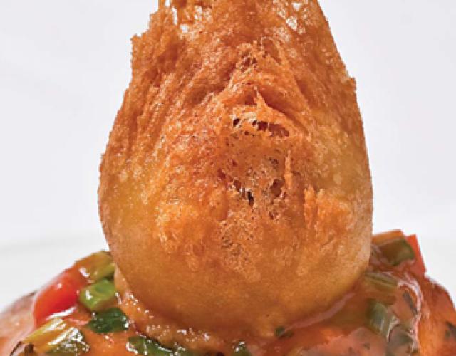 Blue Crab Beignets Chef Justin Devillier Beignets made with two Louisiana favorites - Blue Crab Meat and Abita Beer. Cook/Prep Time: 4 HoursServings: 4 Ingredients Batter 1 cup all-purpose flour 1/4 cup plus 2 tablespoons corn starch 1 tablespoon baking powder pinch of salt pinch of pepper 1 cup Abita amber beer vegetable oil for frying as needed Filling 1/2 cup Louisiana blue crab meat,picked through for shells 1/2 cup mascarpone cheese 1/4 cup chives 1 shallot, very small diced 2 teaspoons salt pinch of pepper Directions Mix all dry ingredients. Add beer slowly until batter is just thicker than pancake batter. Set aside, covered, at room temp for up to 2 hours. Mix all ingredients in a medium sized bowl and form into 1/2 ounce balls. To complete beignets:Heat oil in a fryer or cast iron skillet to 375ºF. Drop crab filling balls in the batter and lift out with a teaspoon. Gently drop them into the oil and fry for 2 to 3 minutes until golden brown and hot all the way through. Show off your culinary skills. Share pictures of your finished dish on social media and tag them with #LouisianaSeafood!