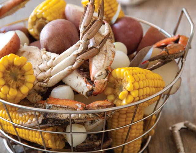 Cajun Crab Boil Courtesy Hoffman Media When crabs are in season, gather some friends and host a boil with this go-to recipe. Cook/Prep Time: 1 Hour 30 MinutesServings: 6 Ingredients 4 quarts water2 Tbsp. distilled white vinegarCrab Boil, recipe follows (see note)4 bay leaves4 dried chile peppers3 sprigs fresh thyme1 head garlic, cloves separated and peeled1/4 cup sea salt2 lemons, halved12 fresh crabs3 pounds new potatoes, scrubbed clean4 ears corn, shucked and cut into thirds1 (10 oz.) bag pearl onions, peeled1 (10 lb.) bag ice Crab Boil 1/4 cup yellow mustard seeds3 Tbsp. coriander seeds2 Tbsp. sea salt2 Tbsp. dill sprigs2 Tbsp. whole allspice1 Tbsp. crushed red pepper1 Tbsp. black peppercorns1 tsp. cayenne pepper Directions 1. In a very large stockpot, bring 4 quarts water, vinegar, Crab Boil, bay leaves, chiles, thyme, garlic, salt, and lemons to a rolling boil over high heat. Add crabs, potatoes, corn, and onions. Return mixture to a rolling boil, and cook for 5 minutes. Turn heat off, and cover pot for 15 to 20 minutes. 2. Pour ice into pot. (This helps the crabs absorb the seasonings and prevents them from overcooking.) Let crabs stand in water for at least 1 hour before serving. Crabs can be served warm or completely cooled. Crab Boil Makes 1 Satchet 1. In a small bowl, combine all ingredients. On a large square of cheesecloth or muslin, pile mixture in the center. Bring cloth up and around mixture; secure with kitchen twine like a sachet. Notes Instead of homemade Crab Boil, you can substitute 1 (3-oz.) package crab boil in a bag, such as Zatarain’s. Show off your culinary skills. Share pictures of your finished dish on social media and tag them with #LouisianaSeafood!
