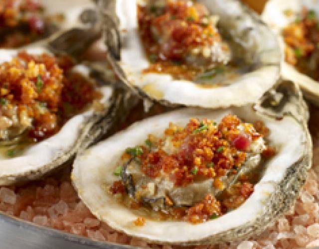 Char-Grilled Louisiana Oysters with Bacon-Anchovy Butter Oysters simmered then grilled and drizzled with fresh lemon juice! Cook/Prep Time: 1 HourServings:12 Ingredients 72 ea Louisiana Oysters 1 3/4 lb Unsalted butter, divided 1 1/2 cups Bacon, applewood smoked, thick cut, small dice 2 Tbsp Anchovy fillets, oil marinated, mashed to paste 6 Tbsp Garlic, minced 3/4 cup Bourbon 2 Tbsp Original TABASCO® brand Pepper Sauce 9 Tbsp Lemon juice, divided 2 1/4 cups Panko breadcrumbs 3/4 cup Parmesan 3 Tbsp Smoked paprika Directions Prepare and light charcoal grill or preheat gas grill. Combine 1½ lb. butter, bacon, anchovy fillets, garlic, bourbon, TABASCO® and 6 Tbsp. lemon juice in medium saucepan. Bring to simmer and cook slowly for 30 minutes. Remove from heat and reserve. Clean outside of Louisiana oysters to remove any loose debris. Shuck oysters. Strain oyster liquid into container and add shucked oysters. Reserve bottom half of shell and discard top half. Melt remaining ¼ butter in sauté pan. Add breadcrumbs and cook while stirring constantly until slightly browned. Remove from heat and reserve. Place bottom half of shells on grill. Add small amount of bacon-anchovy butter sauce to each shell. Allow shells and sauce to heat up. Spoon 1 oyster into each shell and top with more sauce and a little oyster liquid. Cook until edges of oyster begin to curl up. Sprinkle with breadcrumbs, Parmesan and smoked paprika. Continue to cook until breadcrumbs brown slightly and oysters are cooked, but not overcooked. To finish, drizzle each oyster with some of the remaining 3 Tbsp. fresh lemon juice. Show off your culinary skills. Share pictures of your finished dish on social media and tag them with #LouisianaSeafood!
