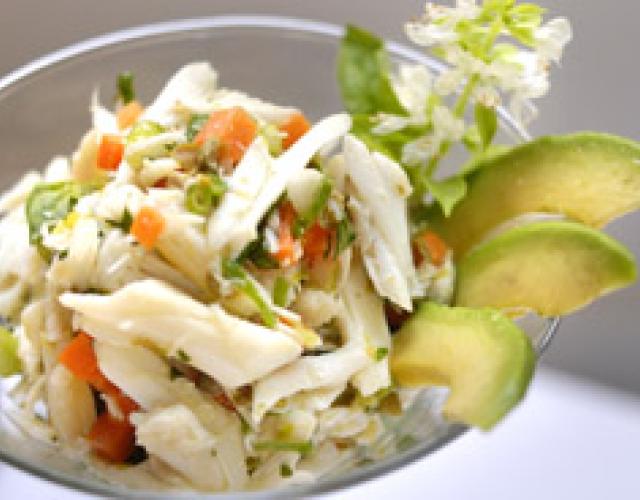 Crab, Carrot, Caper & Lime Salad Chef Susan Spicer Delicious summer dish that serves eight as an appetizer. Ingredients Juice of 3 limes (approx 2 oz) 2 medium shallots, minced 1 tablespoon champagne or cider vinegar 6-8 oz extra virgin olive oil salt, pepper, hot sauce 3 tablespoons roughly chopped basil ½ bunch finely chopped scallions 1 lb jumbo lump crabmeat, picked for shells ½ cup fine diced carrots, blanched and shocked in ice water 2 tablespoons chopped capers Basil leaves Sliced ripe avocado Directions Place lime juice, shallots, and vinegar in a small bowl and whisk in the olive oil. Season to taste with salt, pepper and hot sauce. In another bowl, mix basil, scallions, crabmeat, carrots and capers, then fold in the lime vinaigrette until ingredients are well coated and salad is tasty. Garnish with basil sprigs and avocado and serve. Show off your culinary skills. Share pictures of your finished dish on social media and tag them with #LouisianaSeafood!
