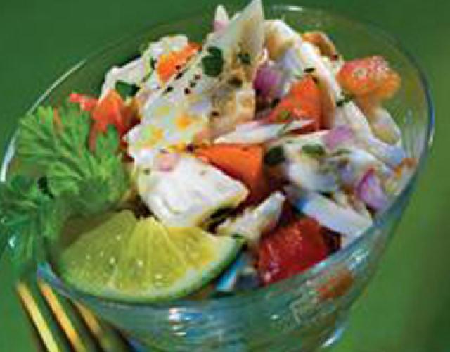 Crabmeat Ceviche Courtesy Louisiana Cookin' Ceviche is South American dish that uses the acidity in citrus juice to “cook” fresh seafood. Here, lime juice and Louisiana crabmeat go to work. Cook/Prep Time: 20 MinutesServings: 4 Ingredients 1 pound jumbo lump Louisiana crabmeat 1/2 jalapeño 2 tablespoons red onion 1 large, ripe tomato 2 tablespoons fresh lime juice 2 tablespoons extra-virgin olive oil 1 tablespoon chopped fresh cilantro 1/2 teaspoon salt, or to taste 1/4 teaspoon black pepper, or to taste Directions Check the crabmeat for shell pieces and clean as needed. Place in a medium-sized bowl. Seed the jalapeño, depending upon the heat you prefer – the more white ribbing left, the hotter the dish will be. Mince finely along with onion. Cut the outer flesh away from the tomato, discarding pulp and seeds. Dice finely. Add the lime juice, olive oil, cilantro, salt and pepper. Gently toss and check seasoning. Serve in a chilled martini glass. Show off your culinary skills. Share pictures of your finished dish on social media and tag them with #LouisianaSeafood!