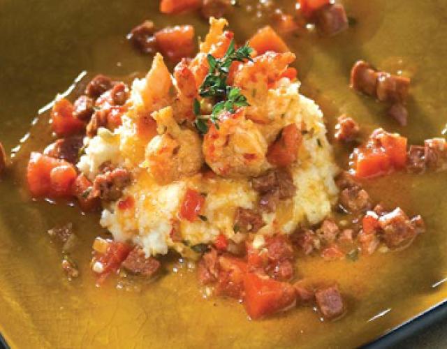 Crawfish & Andouille Grits White grits smothered with a crawfish stock, Louisiana crawfish tail meat and andouille sausage. Ingredients White Grits4 cups water1 teaspoon salt1 cup Anson Mill white stone-ground organic grits1/2 cup mascarpone cheese2 tablespoons butter Crawfish Stock1 rib celery, quartered1 carrot, peeled and quartered1 onion, peeled and quartered1 sprig thyme1 head garlic, split in half2 pounds Louisiana crawfish shells1 gallon water (or just enough to cover shells) Sautéed Crawfish and Sauce2 tablespoons extra virgin olive oil30 large Louisiana crawfishCreole spice, to tastesalt, to taste6 tablespoons Jacob’s andouille sausage, diced small1 tablespoon minced garlic1 tablespoon minced shallot2 tablespoons small diced Piquillo pepper1 tablespoon chopped thyme1 quart crawfish stock2 tablespoons unsalted butter2 cups diced tomatoes1 tablespoon chopped chives1 teaspoon fresh lemon juice1/2 cup chervil pluches (small 3-leafed sprigs of chervil), for garnish Directions White GritsBring the water to a boil and lightly season with salt. Add the grits while stirring rapidly and reduce heat to low. Simmer the grits for about 20 minutes, stirring constantly to prevent them from sticking to the bottom of the pot. To finish, turn off heat and stir in butter and mascarpone cheese. Crawfish StockTo a large pot, add celery, carrot, onion, thyme, garlic, shells, and just enough water to cover the other ingredients. Simmer on low for 1 hour, skimming the fat off throughout the hour. Strain and reserve liquid in refrigerator. Sautéed Crawfish and SauceHeat a large pan over medium heat and add the olive oil. Season the crawfish with Creole spice and salt and sauté until they start to brown but are not cooked all the way through. Remove the crawfish and hold on the side. To the pan add the andouille sausage, garlic, shallot, Piquillo pepper, and thyme, and sauté until they become aromatic. Add the stock and bring to a low simmer. Stir in the butter and reduce until thick. Add crawfish back to the pot and cook through. Finish with tomatoes, chives, and lemon juice. For each serving, place 4 tablespoons of grits in the middle of a large bowl. Arrange the crawfish (evenly divided among the plates, 5 each) in the middle so they stand up, tails facing in. Spoon the sauce around to fill in the negative space. Garnish with fresh chervil pluches. Show off your culinary skills. Share pictures of your finished dish on social media and tag them with #LouisianaSeafood!
