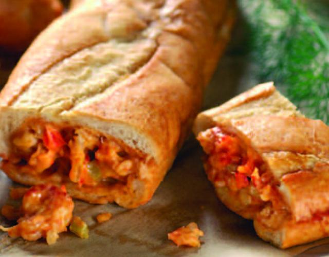 Crawfish Bread Chef John Folse - Adapted from The Encyclopedia of Cajun and Creole Cuisine This is a great bread to be served as an appetizer or a side dish to your favorite meal. Start with Louisiana crawfish! Cook/Prep Time: 45 to 50 MinutesServings: 4 to 5 Ingredients 2 cups peeled crawfish tails 1 loaf French bread 1/2 stick butter 1/2 cup diced onions 1/2 cup diced celery 1/4 cup diced red bell peppers 1 tablespoon minced garlic 1/2 teaspoon dry mustard 1/2 cup mayonnaise 1/3 cup mozzarella cheese 1/3 cup Cheddar cheese Directions Slice French bread in half lengthwise and scoop out the inside of the loaf. Set aside. In a large skillet, melt butter over medium-high heat. Sauté crawfish, onions, celery, bell peppers and garlic 15 minutes. Blend in dry mustard and mayonnaise. Add cheeses and blend until melted. Spread crawfish mixture inside the bread then put halves back together. Butter the top of the loaf, wrap it in foil and bake on a barbecue pit or in a 350°F oven for 20 to 30 minutes. Cut bread into slices and serve hot. Show off your culinary skills. Share pictures of your finished dish on social media and tag them with #LouisianaSeafood!