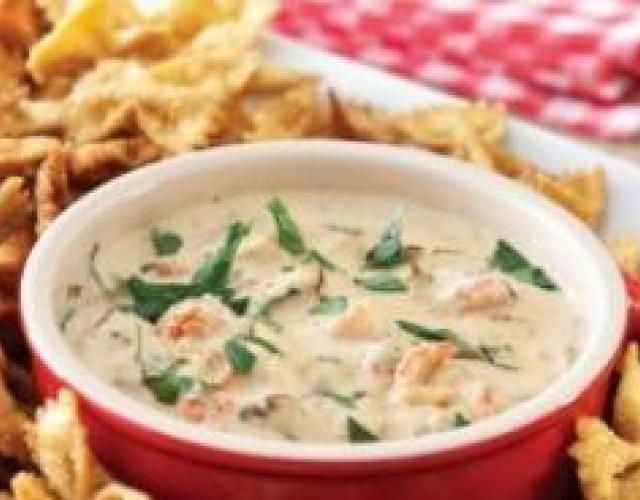 Crawfish Dip with Fried Bow Tie Pasta Courtesy Hoffman Media Save the chips for another day and scoop up this tasty dip with unexpected fried pasta. Cook/Prep Time: 45 MinutesServings: 6 Ingredients Crawfish Dip 1 cup water1 (1 oz.) package dried porcini mushrooms 3/4 cup unsalted butter 1 bunch green onions, sliced 1/4 cup all-purpose flour 2 cloves garlic, chopped 1 lb. cooked crawfish tail meat 2 tsp. salt 1 tsp. ground black pepper 1/2 tsp. cayenne pepper 2 cups sour cream1 cup chopped fresh parsley Fried Bow Tie Pasta 8 oz. hot cooked bow tie pasta 1/3 cup yellow cornmeal 3 Tbsp. Creole seasoning Peanut oil, for frying Directions Crawfish Dip In a medium microwave-safe bowl, heat 1 cup water in the microwave on High until very hot. Add mushrooms, and let stand 15 minutes or until mushrooms soften. Strain mushrooms through a fine-mesh sieve. Reserve liquid, and finely chop mushrooms. In a medium saucepan, melt butter over medium heat. Add green onion, and cook about 3 minutes or until softened. Stir in flour; cook 5 minutes. Add chopped mushrooms, reserved mushroom liquid, and garlic; bring to a low boil. 4.) Stir in crawfish, salt, and peppers; cook 5 minutes more. Reduce heat to low; stir in sour cream and parsley. Serve warm with Fried Bow Tie Pasta. Fried Bow Tie Pasta Arrange pasta in a single layer over paper towels to remove any remaining water. In a large bowl, combine pasta, cornmeal, and Creole seasoning, tossing well to coat. In a large pot or Dutch oven, pour oil to a depth of 2 inches; heat over medium-high heat until a candy or deep-fry thermometer reads 375º. Shake excess cornmeal mixture from pasta, and add in small batches to hot oil; cook 4 minutes or until golden brown. Remove pasta to a paper-towel-lined baking sheet to drain. Pasta will keep up to 1 week in an airtight container. Notes: When you're working through that mountain of boiled crawfish, don't eat the straight ones—they weren't alive when they went into the boiling pot. Show off your culinary skills. Share pictures of your finished dish on social media and tag them with #LouisianaSeafood!