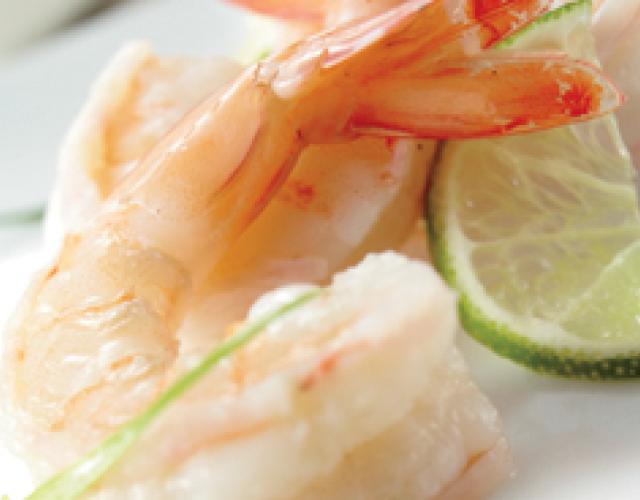 Ginger-Poached Louisiana Shrimp with Yuzu-Wasabi Cocktail Sauce Louisiana shrimp poached with mirin and ginger accompanied by spicy yuzu-wasabi sauce. Servings:12 Ingredients 4 lb Louisiana Shrimp, 16/20, peeled and deveined, tail on 6 cups Mirin 3 cups Rice vinegar 3/4 cup Ginger, sliced 3/4 cup Scallion, chopped 9 ea Garlic, whole cloves 3 ea Jalapeño, halved 3/4 cup Carrot, thin sliced 3/4 cup Celery, thin sliced 1 Tbsp Black peppercorns, whole 3 ea Bay leaf 3 Tbsp Curry powder 1 1/2 cups Ketchup 2 Tbsp Yuzu juice* 2 Tbsp Lime juice 2 Tbsp Orange juice 2 Tbsp Wasabi, prepared 1 1/2 tsp Sesame oil Directions Combine mirin, rice vinegar, ginger, scallions, garlic, jalapeños, carrots, celery, peppercorns, bay leaf and curry powder in medium-size saucepot. Bring to simmer and simmer for 10 minutes. While poaching liquid is cooking, prepare Yuzu-Wasabi Cocktail Sauce. Combine ketchup, yuzu, lime juice, orange juice, wasabi and sesame oil. Mix well and reserve. Add shrimp to poaching liquid and simmer gently for 2-3 minutes. Remove shrimp from liquid and chill. Serve chilled shrimp with Yuzu-Wasabi Cocktail Sauce on the side. *Available at Asian markets, or substitute lime juice Show off your culinary skills. Share pictures of your finished dish on social media and tag them with #LouisianaSeafood!