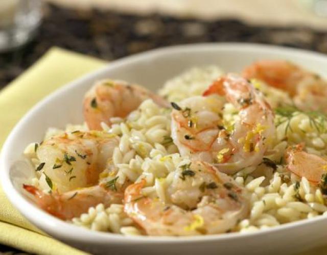 Lemon-Herb Louisiana Shrimp with Dilled Orzo Courtesy Louisiana Seafood for Life Servings: 4, 312 Calories per serving Ingredients 24 each - Jumbo Louisiana Shrimp, 21-25 count, peeled and deveined 2 Tbsp. - Dill, freshly chopped 1 cup, dry - Orzo, cooked per package instructio ½ cup - Extra-virgin olive oil 2 Tbsp. - Basil, freshly chopped 2 Tbsp. - Thyme, freshly chopped ¾ cup - Lemon juice ¾ cup - Clam juice 1 Tbsp. - Lemon zest 2 Tbsp. - Flat leaf parsley Directions To make Dilled Orzo Mix dill with warm cooked orzo; hold warm until needed. To make Louisiana Shrimp and Sauce In sauté pan, heat olive oil; add herbs and shrimp; cook for 1 minute. Add lemon juice and clam juice and cook until shrimp is cooked through, 2-3 minutes. Add lemon zest and remove from heat. Place ¼ cup cooked orzo in center of each plate/bowl; spoon shrimp and sauce around orzo. Garnish each serving with 1 tsp. parsley. Show off your culinary skills. Share pictures of your finished dish on social media and tag them with #LouisianaSeafood!