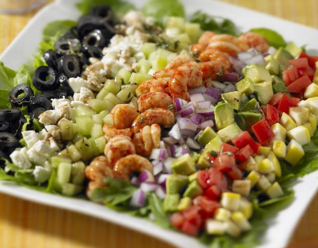Louisiana Crawfish Striped Salad Courtesy Louisiana Seafood for Life Servings: 4, 169 Calories per serving Ingredients 1 lb. Louisiana Crawfish tails, cooked 1 lb. Mixed salad greens, chopped as needed 1 cup Black olives, sliced ¾ cup Feta cheese, crumbled 2 cups Yellow squash, small-diced ¾ cup Red onion, small-diced 1 cup Avocado, small-diced 2 cups Tomato, small-diced 2 cups Cucumber, peeled, seeded, small-diced 1 cup Low-fat balsamic salad drressing Directions Mound salad greens on serving plates. Line up each ingredient, starting left to right: olives, feta, squash, Louisiana Crawfish, onions, avocados, tomatoes, cucumbers. Serve drizzled with salad dressing, or serve dressing on the side. Show off your culinary skills. Share pictures of your finished dish on social media and tag them with #LouisianaSeafood!