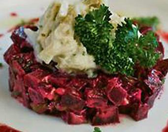Louisiana Jumbo Lump Crab with Roasted Beet Tartare Chef Brian Landry Diced beets tartare with crab meat on top. Servings: 6 Ingredients Beet Tartare 2 1/2 cups diced roasted beets (4 to 5 medium-sized beets) 3 tablespoons extra-virgin olive oil 2 tablespoons Dijon mustard 2 minced shallots 1 teaspoon minced garlic 3 tablespoons capers 1 tablespoon fresh parsley, chopped 1/2 teaspoon sea salt1/4 teaspoon freshly ground black pepper 12 ounces Louisiana jumbo lump crabmeat 8 ounces white remoulade sauce (recipe follows) 6 sprigs chervil White Remoulade Sauce 3/4 cup mayonnaise 2 tablespoons chopped green onion 2 tablespoons yellow onion, finely diced 2 tablespoons celery, finely diced 2 teaspoons parsley, chopped 2 teaspoons Dijon mustard 3 teaspoons horseradish 1 teaspoon mustard powder 1/2 teaspoon garlic (minced) 1/2 teaspoon Worcestershire 1/4 teaspoon salt 1/4 teaspoon white pepper 1 tablespoon black mustard seed Directions Beets Preheat oven to 350°F. Trim the greens off the top of the beets. Wrap each beet in foil. Roast in oven for approximately 1 hour. Check beets by inserting a wooden skewer into center of the beet to make sure it is tender. Once done, allow beets to cool. Peel the skin off the beets using a vegetable peeler. Dice into 1/4-inch cubes. (Wear latex gloves to avoid staining the skin on your hands.) In a small stainless steel mixing bowl, whisk together the olive oil, mustard, shallots, and garlic. Stir in beets, capers, parsley, salt, and pepper. Divide beets into 6 portions by placing approximately 1/4 cup of beet mixture into a 4-inch ring mold set in the center of a plate. If you don’t have a ring mold, you can use a soup or tuna can that has both ends cut off. Crab Pick through crabmeat to remove any shells. Gently fold crabmeat into remoulade sauce, being careful not to break up the large lumps of crab. Place 1 1/2 to 2 ounces of crab on top of the beets. Garnish with chervil sprigs Sauce Combine all ingredients in a small mixing bowl and whisk until incorporated. Show off your culinary skills. Share pictures of your finished dish on social media and tag them with #LouisianaSeafood!