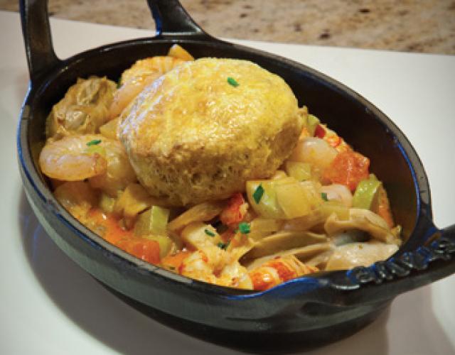 Louisiana Seafood Stew & Sunset Sweet Potato Black Pepper Biscuit LA Cote Brasserie, New Orleans Wine and Food Experience / Photo Credit: George Long La Cote Brasserie used this recipe to win a Gold medal at the 2010 New Orleans Wine and Food Experience's Soup, Stews and Gumbo category. Prep/Cook Time: 45 MinutesServings: 4 to 6 Ingredients ½ cup Sweet Potatoes (Baked and Pureed) 2 tbsp Louisiana Brown Sugar 2 tsp Black Pepper (fresh ground) 2 tsp Baking Powder 1 tsp Butter ¼ cup Milk ½ cup Flour 1 dash Salt 1 tsp Cajun Seasoning 12 ea Louisiana Oysters (shucked) 2 lb Louisiana Crawfish Tail Meat 2 lb Louisiana Shrimp 21/25 2 tbsp Salad Oil ¼ cup Onion (small dice) ¼ cup Red Bell Pepper (small dice) 1 tbsp Garlic (minced) ½ cup Mirliton (small dice) 2 tbsp Kosher Salt 2 tbsp Cajun Seasoning 1 tbsp Tabasco Hot Sauce 1 tbsp Worcestershire Sauce 4 oz Abita Amber Beer 4 oz Shrimp Stock 4 oz Heavy Cream Directions Sweet Potato Black Pepper Biscuits Preheat and over to 350 degrees. In a large bowl mix the sweet potatoes and the butter together. In a separate bowl sift the baking soda, sugar, flour, black pepper, Cajun seasoning and the salt together. Mix the two bowls together in a small kitchen mixer with the dough hook attachment. Slowly add the milk. Butter a baking sheet/pan lightly. Using a small soup or teaspoon, spoon a little of the mixture (approx 2 tbsp worth) onto the baking sheet. Continue until all the mix is gone. Bake for 12 to 15 minutes. Keep warm. Seafood Stew Heat a large sauté skillet over high heat. When it is hot add the oil, onions, bell peppers and garlic. Sauté for 2 minutes. Add the shrimp, oysters, Cajun seasoning and mirliton. Continue to cook until the shrimp are half way cooked. Deglaze with the Abita Beer and reduce by half. Add the shrimp stock, Tabasco, Worcestershire sauce and crawfish tail meat. Season to taste. To Serve Place the biscuits into the bottom of a soup bowl.Ladle the Louisiana Seafood Stew over the biscuit and serve. Show off your culinary skills. Share pictures of your finished dish on social media and tag them with #LouisianaSeafood!