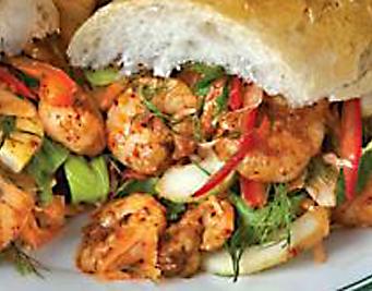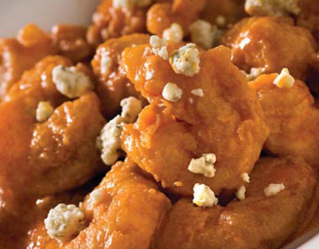 Louisiana's Buffalo Shrimp Chef Brent Applewhite, Courtesy Louisiana Cookin' An irresistible blend of buffalo sauce and blue cheese crumbles top fried Louisiana shrimp. Cook/Prep Time: 15 MinutesServings: 6 Ingredients 5 ounces Louisiana-style hot sauce 1/2 pound whole butter, cold, unsalted, cut into 1/2-inch cubes 2 tablespoons heavy cream 1 pound jumbo Louisiana shrimp, peeled and deveined 2 cups all-purpose flour 1/2 cup whole milk 2 eggs 6 cups oil, preferably canola 1/2 cup blue cheese crumbles Directions In a small sauce pan, reduce the hot sauce until thick, add the heavy cream, bring to a boil, and lower the heat. On low heat, stir in the butter in stages, keeping the sauce hot the whole time. Set aside, but make sure it stays hot. Heat oil to 350ºF. Whip the eggs and add the milk for an eggwash. Bread the shrimp by rolling them in the flour, then dipping them in the egg wash, and rolling them in flour again. Fry shrimp in the hot oil for 3 minutes (depending on the fryer). Remove shrimp from oil and dry with a napkin. Put shrimp in a large bowl, add the reserved sauce, and toss. Plate the shrimp, draining most of the sauce from the shrimp as you do so, and top with blue cheese crumbles. Show off your culinary skills. Share pictures of your finished dish on social media and tag them with #LouisianaSeafood!