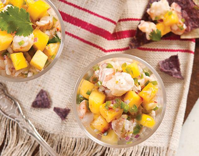 Peach and Shrimp Ceviche Courtesy Hoffman Media This is an imaginative take on ceviche for when your shrimp are extra-fresh. Cook/Prep Time: 15 MinutesServings: 6 Ingredients 1 peach, peeled, pitted, and diced 1 lb. large fresh shrimp, peeled, deveined, and chopped 1/2 cup finely chopped red onion 1/4 cup finely chopped jalapeño Zest of 1 lime Juice of 3 limes 1/2 tsp. kosher salt 1/4 tsp. cayenne pepper 1/4 cup chopped fresh cilantro leaves Tortilla chips, for serving Directions In a large bowl, combine peach, shrimp, onion, jalapeño, lime zest and juice, salt, and cayenne; toss until combined. Cover, refrigerate 15 minutes, and fold in cilantro leaves. Serve immediately with tortilla chips. Show off your culinary skills. Share pictures of your finished dish on social media and tag them with #LouisianaSeafood!