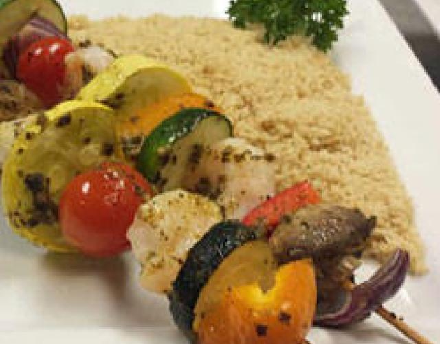 Pesto Shrimp and Veggie Kabob Courtesy Hoffman Media Fresh Louisiana shrimp, vegetables and summery pesto come together in this simple and healthy recipe that’s perfect for the grill. Cook/Prep Time: 45 MinutesServings: 5 Ingredients 1 1/2 lbs. jumbo or large Louisiana shrimp, peeled and deveined 3 bell peppers, preferably different colors, seeded and cut into 1-inch pieces 2 zucchinis, cut into 1/2 inch round slices 2 yellow squash, cut into 1/2 inch round slices 8 oz. whole mushrooms, cleaned with stems removed 1 red onion, cut into chunks 1 pint cherry tomatoes 6 oz. prepared pesto Salt and pepper, to taste Directions These can be cooked on a grill or baked in the oven. Grilling: Preheat grill for medium heat;Baking: Preheat oven to 350ºF Spray baking dish or pan with cooking spray. Alternately thread vegetables and shrimp onto skewers; try to use at least one piece of each vegetable and a few shrimp on each skewer. Place assembled skewers in baking dish or pan and brush each skewer on all sides with pesto. Season to taste with salt and pepper. To grill, cook skewers on the preheated grill until vegetables are tender and shrimp are cooked; turning occasionally, 10 – 15 minutes. To bake, cook skewers uncovered for 10 – 15 minutes or until vegetables are tender and shrimp are cooked. Serve with Quinoa, Brown and Wild Rice Mix, or Couscous. Nutrition Information: Per Serving: 1 Kebab (167.1g)132 calories6.7g Fat1.7g Sat. Fat12.6g Protein6.2g Carbohydrate1.7g Fiber0.5g Sugar150mg Sodium Show off your culinary skills. Share pictures of your finished dish on social media and tag them with #LouisianaSeafood!