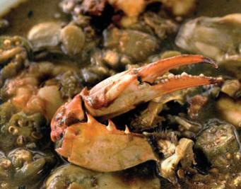 Seafood Okra Gumbo Courtesy Gumbo Shop, Traditional and Contemporary Creole This seafood gumbo incorporates Louisiana shrimp, crabs and okra. As is the case with most gumbos, this dish is best prepared either early in the day it is to be served, or even the day before, allowing the flavors to marry. Cook/Prep Time: 2 hours 30 minutesServings: 6 to 10 Ingredients 2 pounds fresh Louisiana shrimp(41–50 count) 2 small Louisiana blue crabs, cleaned 3 quarts water, in all 2 tablespoons cooking oil 1 quart fresh or frozen okra, sliced into1/2-inch rounds 2/3 cup plus 2 tablespoons cooking oil, in all 1/2 cup all-purpose flour 2 cups chopped onions 1 cup chopped green bell pepper 1/2 cup chopped celery 2 teaspoons minced garlic 1 16-ounce can chopped tomatoes 2 bay leaves 2 teaspoons salt 1/2 teaspoon black pepper 1/2 teaspoon white pepper 1/4 teaspoon cayenne pepper Directions Peel and de-vein the shrimp, and set aside, covered, in the refrigerator. Rinse the shrimpshells and heads, place in a non-reactive stock pot along with 2 quarts of water. Bring to a boil, reduce heat and simmer for 30 to 45 minutes to make astock. Strain, discard the shells and heads, and set the stock aside. Meanwhile, wash the crabs well under running water, place in a non-reactive pot with 1 quart of water, bring to a boil and simmer for 20 to 30minutes. Strain, reserving stock and crabs. When the crabs are cool enough to handle, snap both claws off, then break the body in half. Set aside. In a heavy bottomed skillet, heat 2 tablespoons of oil, add the okra, and sauté over medium high heat for about 10 to 15 minutes or until all the“ropiness” is gone. This step may take longer if you’re using fresh okra. Place the 2/3 cup oil in a large (8-quart) heavy bottomed non-reactive Dutch oven-type pot. Add the flour and, over medium-high heat, make a darkbrown roux. As soon as the proper color is achieved, add the onions, bell pepper, celery, and garlic. Sauté, stirring occasionally, until tender. During this process, allow the vegetables to stick to the bottom of the pan a bit, then scrape the bottom witha metal spoon or spatula. This allows some of the natural sugars in the onions to caramelize, rendering great depth of flavor. When the seasoning vegetables are tender add the tomatoes, bay leaves, the black, white, and cayenne peppers, and the salt. Cook for about 10minutes, repeating the stick-and-scrape process with the tomatoes. Add the sautéed okra and cook for 10 more minutes. Add the crab stock and half of the shrimp stock to the pot. Stirring constantly, bring the pot to a boil. Lower the heat a bit, partially cover and simmerfor about 1 hour, stirring occasionally. If the gumbo appears too thick, add more stock to adjust. Adjust salt and pepper to taste and adjust the pepper ifdesired. Add the broken crabs and simmer for about 10 minutes. Add the peeled shrimp, return to a boil, and simmer until the shrimp are firm and pink,about 5 minutes. Remove the pot from heat. Show off your culinary skills. Share pictures of your finished dish on social media and tag them with #LouisianaSeafood!