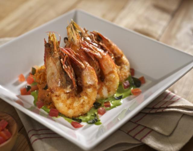 Shrimp & Grits Chef Chris Lusk A New Orleans Favorite - Shrimp and Grits Cook/Prep Time: 25 MinutesServings: 4 Ingredients Basil Absinthe Beurre Verde 1 qt. heavy cream ½ bunch basil 2 handfuls baby spinach 3 oz. absinthe 1 tsp. salt 1 lb. unsalted butter Pinch of pepper powder Shrimp 1 lb. Louisiana Shrimp 1 cup Panko breadcrumbs 1 tsp. shrimp powder mix ½ cup masa Creole seasoning to taste Tomato & Grilled Oregano Grits 2 cups stone-ground grits 1 qt. whole milk 1 qt. heavy cream 1 tbsp. salt 1 tbsp. pepper powder ½ bunch oregano 4 cups fresh tomato purée 1 cup tomato paste 2 sticks unsalted butter ½ cup shallots, onions, & garlic (combined) Directions Basil Absinthe Beurre Verde Reduce the heavy cream in half with absinthe. Add spinach and cook for about 5 minutes. Season with salt and pepper powder. Blend the sauce and incorporate the butter into it. Strain it on a fine mesh strainer. Breading for the Shrimp Mix the Panko, dried shrimp powder, masa flour, and Creole seasoning. Toss peeled and deveined shrimp in mixture and pan fry until golden-brown. Tomato & Grilled Oregano Grits Boil the milk and heavy cream and keep aside. Toss the chopped vegetables in butter and toast the grits for 2 minutes. Pour the liquid into the grits mixture, season them, and cook for about 1-½ hours on low heat. Cook fresh tomato purée and tomato paste in another pan, and add it into grits. Grill the oregano leaves, chop them up, and add into grits. Check the seasoning and serve it with pan-fried shrimp and sauce. Show off your culinary skills. Share pictures of your finished dish on social media and tag them with #LouisianaSeafood!