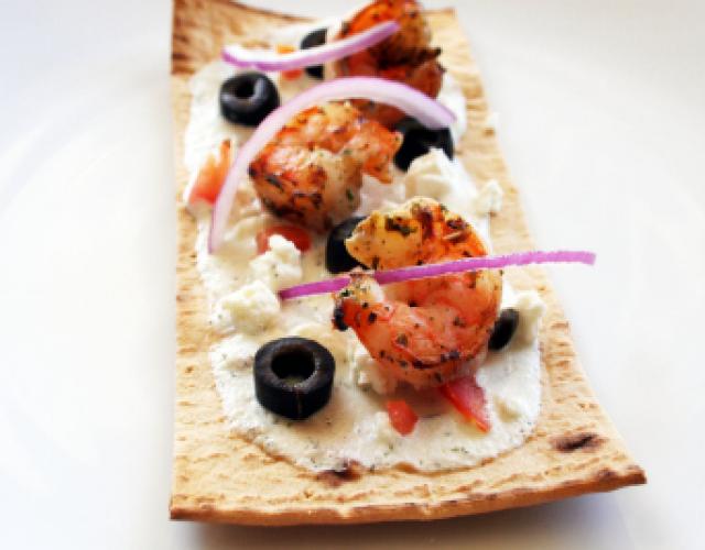 Shrimp Gyro Pizza Chef Michael O'Boyle Louisiana shrimp take a little trip to Greece in this fun little recipe perfect for Summer pool parties, or even your fanciest dinner party. This pizza combines the flavors of a classic Greek gyro with the fantastic taste of fresh Louisiana seafood. Ingredients 1 Package Flatbread or Pita Bread Louisiana Shrimp (peeled and deveined) ½ Cucumber peeled and seeded 8 oz Greek Yogurt (strained) 1 Garlic clove 1 tbsp fresh Oregano or 1 teaspoon dried 1 tsp Lemon juice 2 tbsp Olive oil 1 Roma tomato diced and seeded 1 Can sliced black Olives Feta crumbled 1/3 Red Onion thinly sliced Salt and pepper Directions Tzatziki sauce Combine strained yogurt, cucumber, garlic clove, oregano, lemon juice and 1 tablespoon of olive oil in a blender and mix till combined. Add salt and pepper to taste and set aside. Flatbread and Shrimp Preheat oven to 375 degrees and lightly brush bottom of flat bread* with olive oil. Toast in oven for 3-4 minutes until bottom is crispy. Let cool for 5 minutes. While cooling, season shrimp with salt, pepper and 1 tablespoon of olive oil. Grill for 2 minutes per side or until meat is opaque. Take cooled flatbread and spread a layer of tzatzilki sauce on top, much like you would do with tomato sauce for a pizza. Top with crumbled feta, diced tomatoes, sliced olives and grilled shrimp. Put back in the oven for 3-5 minutes or until cheese starts to melt. Once removed scatter thinly sliced red onions on top. *Can substitute Pita bread as well Show off your culinary skills. Share pictures of your finished dish on social media and tag them with #LouisianaSeafood!