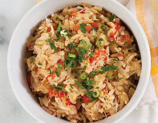 Spicy Seafood Jambalaya Courtesy Hoffman Media A Louisiana tradition that’s incredibly flavorful and great for a crowd. Cook/Prep Time: 30 MinutesServings: 8 Ingredients 3 Tbsp. unsalted butter 1 cup chopped onion 1/2 cup chopped celery 1/2 cup chopped red bell pepper 1/2 cup chopped carrot 1/4 cup minced jalapeño 3 cloves garlic, minced 2 tsp. crushed red pepper 1 tsp. cayenne pepper 1 tsp. salt 1/2 tsp. ground black pepper 1 cup seafood stock 1 cup long-grain rice, cooked and kept warm 1 Tbsp. fresh lemon juice 1/2 tsp. Worcestershire sauce 1/2 (16 oz.) package crawfish tails 1 (8 oz.) container lump crabmeat Garnish: chopped green onion and parsley Directions In a large Dutch oven, melt butter over medium-high heat. Cook onion until translucent, 4 to 6 minutes. Add celery, bell pepper, carrot, and jalapeño; cook until soft, 6 to 8 minutes. Add garlic, red pepper, cayenne, salt, and pepper; stir until fragrant, about 1 minute. Pour in seafood stock, and scrape up any browned bits from bottom of pan. Stir in hot-cooked rice, lemon juice, Worcestershire sauce, crawfish, and crabmeat. Cook 12 to 14 minutes, stirring occasionally. Garnish with green onion and parsley, if desired. Show off your culinary skills. Share pictures of your finished dish on social media and tag them with #LouisianaSeafood!