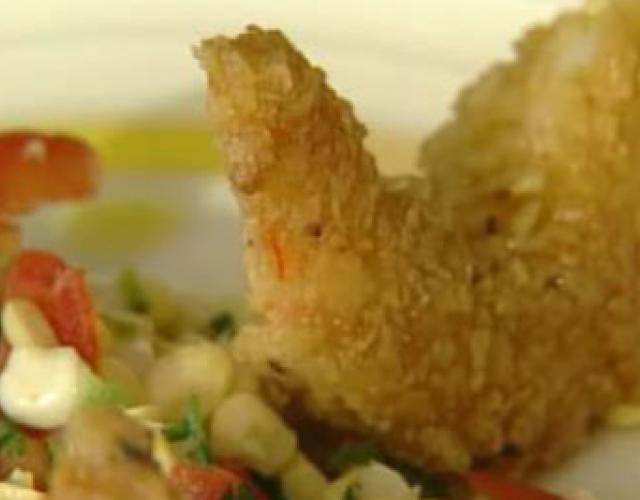 Tortilla Crusted Shrimp Courtesy Louisiana Cookin' Pan fried with a tortilla crust and served with a tangy sauce. Ingredients Sauce 2 limes, zested & juiced 1 teaspoon minced garlic 2 tablespoons honey ¼ cup fresh cilantro leaves ¼ cup fresh parsley ¼ cup mayonnaise ¾ cup sour cream 1 teaspoon rice wine vinegar Salt & pepper, to taste Shrimp 2 large egg whites 1 cup crushed blue corn tortilla chip crumbs 1 cup crushed yellow corn tortilla chip crumbs 1 tablespoon granulated sugar 24 large Louisiana Gulf Shrimp, peeled and de-veined 1/2 cup canola oil Salt and pepper, to taste Directions Sauce Place all of the lime juice, one teaspoon zest and all remaining ingredients into the bowl of a food processor. Pulse until herbs are finely chopped and sauce is well combined, scraping sides of bowl as needed. Season with salt and pepper to taste. Refrigerate until ready to serve with shrimp. Shrimp Place egg whites in a shallow dish, such as a pie plate and beat lightly. Working 6 at a time, coat shrimp with egg whites. In another shallow dish, combine together tortilla crumbs and sugar and mix well. Place shrimp, one at a time, in tortilla crumbs and press crumbs onto shrimp to adhere if necessary. Set shrimp aside when coated and repeat procedure with remaining shrimp. Heat 2 tablespoons canola oil in a large nonstick skillet over medium high heat. Arrange 6-8 shrimp in a single layer in pan and cook for 2-3 minutes on each side until chips are lightly browned and shrimp is cooked through. Remove shrimp from oil drain on a flattened brown paper bag and season with salt and pepper to taste. Add more oil to pan as necessary. Serve warm with Creamy Green Garlic Sauce. Show off your culinary skills. Share pictures of your finished dish on social media and tag them with #LouisianaSeafood!