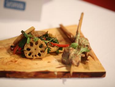 Entrees Alligator-on-a-Stick with Boiled Peanut Sauce and Stir-Fried Garfish Tasso & Graine a Voler Make It