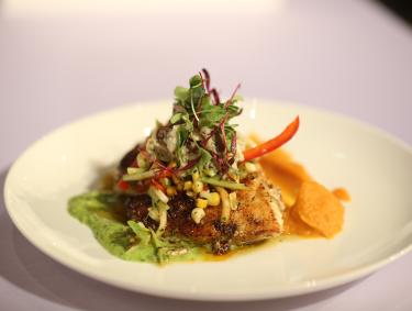Entrees Blackened Sous Vide Grouper and Fava Bean & Sweet Potato Puree with Corn, Crab & Mirliton Slaw Make It